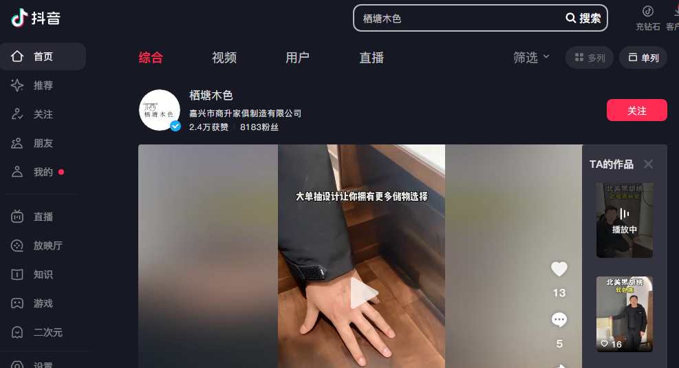 商升家俱抖音平臺上線-棲塘木色品牌歡迎客戶直接下單訂購!